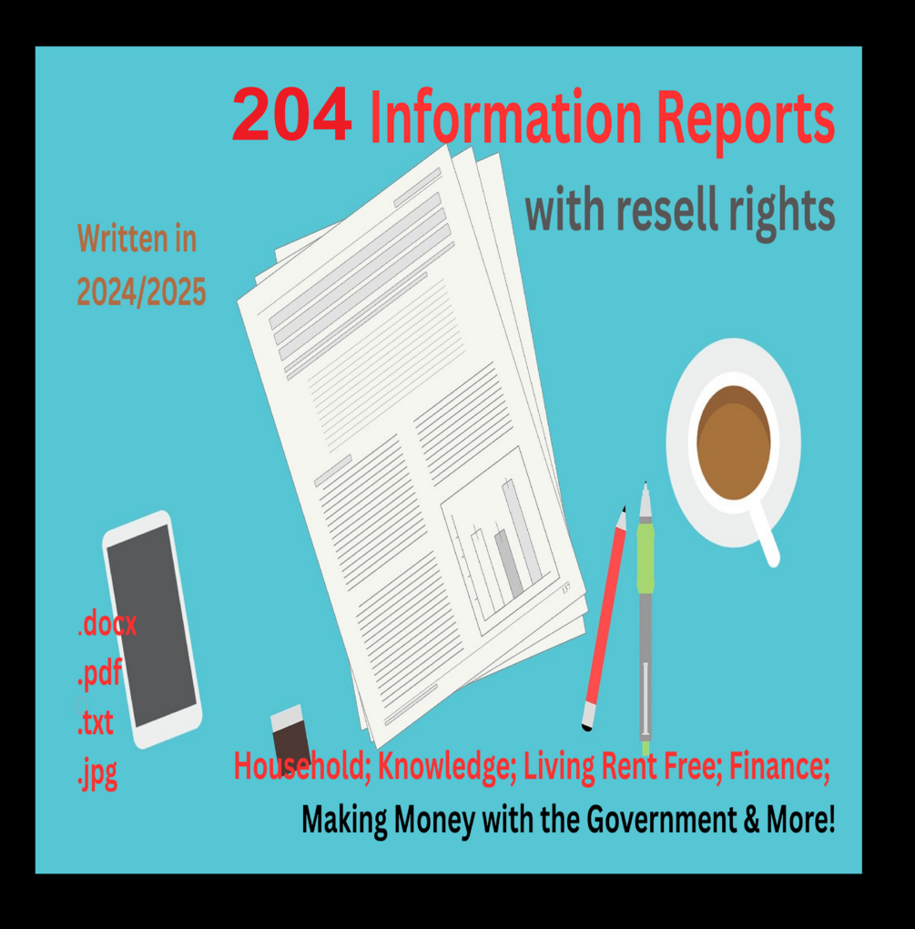 Step into a new era of personal empowerment with this exclusive library of 204 detailed reports — freshly written in 2024 and 2025 — covering Household Mastery, Practical Knowledge for Everyday, How to Live Rent-Free, Make Money with Government Programs, Safeguard Your Finances for the Future and more.